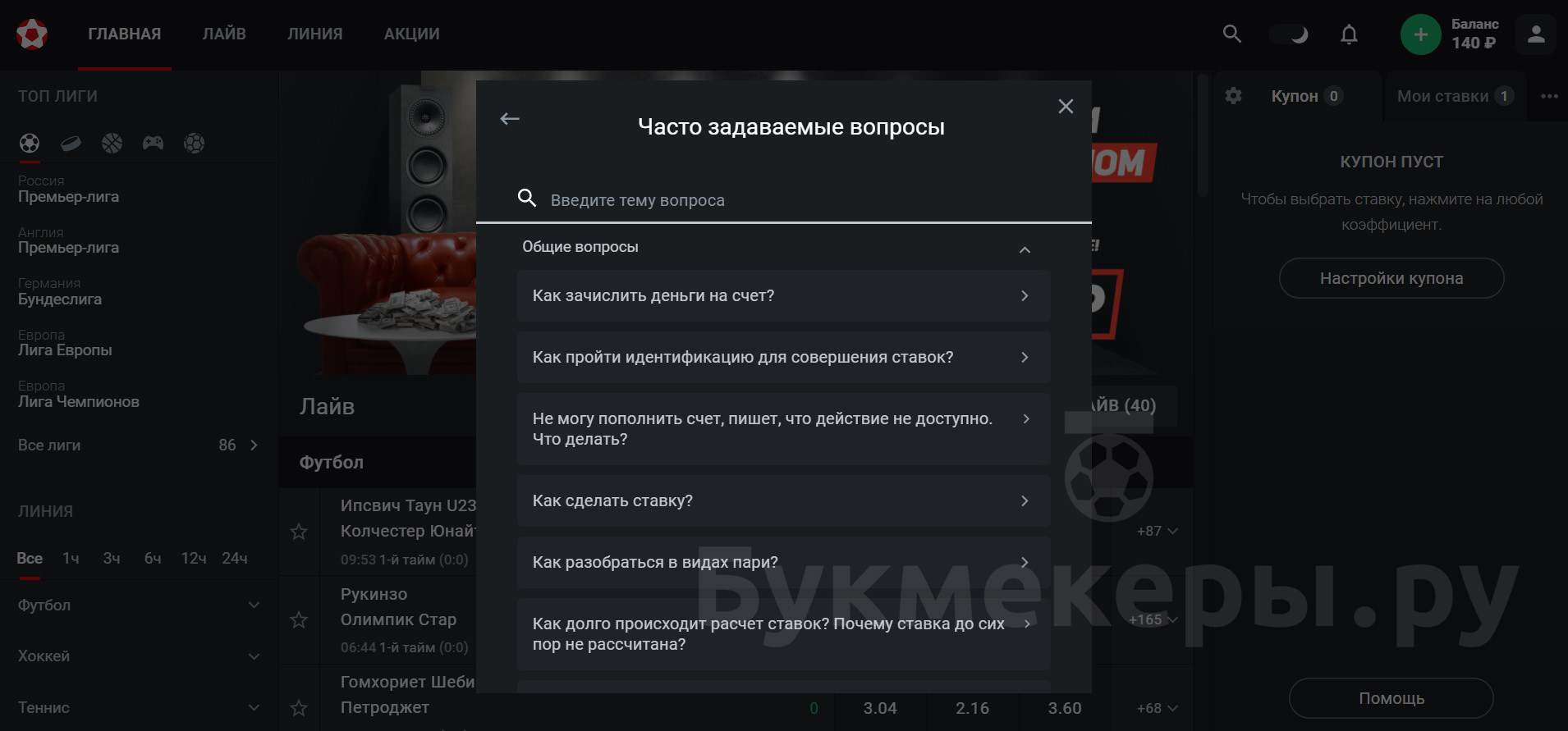 В данном разделе можно задать любой вопрос о функциях сайта, возможностях беттера и правилах приема ставок, регистрации, ввода-вывода средств на личный счет.