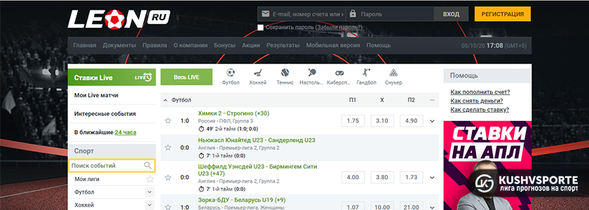 Если говорить о live, то выбор спорта здесь скромнее и линия довольно узкая. По этому параметру Leon нельзя назвать лидером. Особенно с учетом того, что даже для популярных матчей отсутствует возможность смотреть ТВ-трансляции. Те, кто хочет делать ставки в Леон в режиме реального времени, будут немного огорчены. Лучше выбирать для работы прематч. Зато на сайте просто сортировать виды спорта для ставок, подбирать события и подтверждать пари в Купоне.