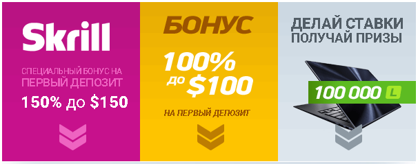 Если Вы делаете первый депозит по системе Skrill, вместо бонуса «100% до $100» Вы получаете специальный бонус — «150% до $150»